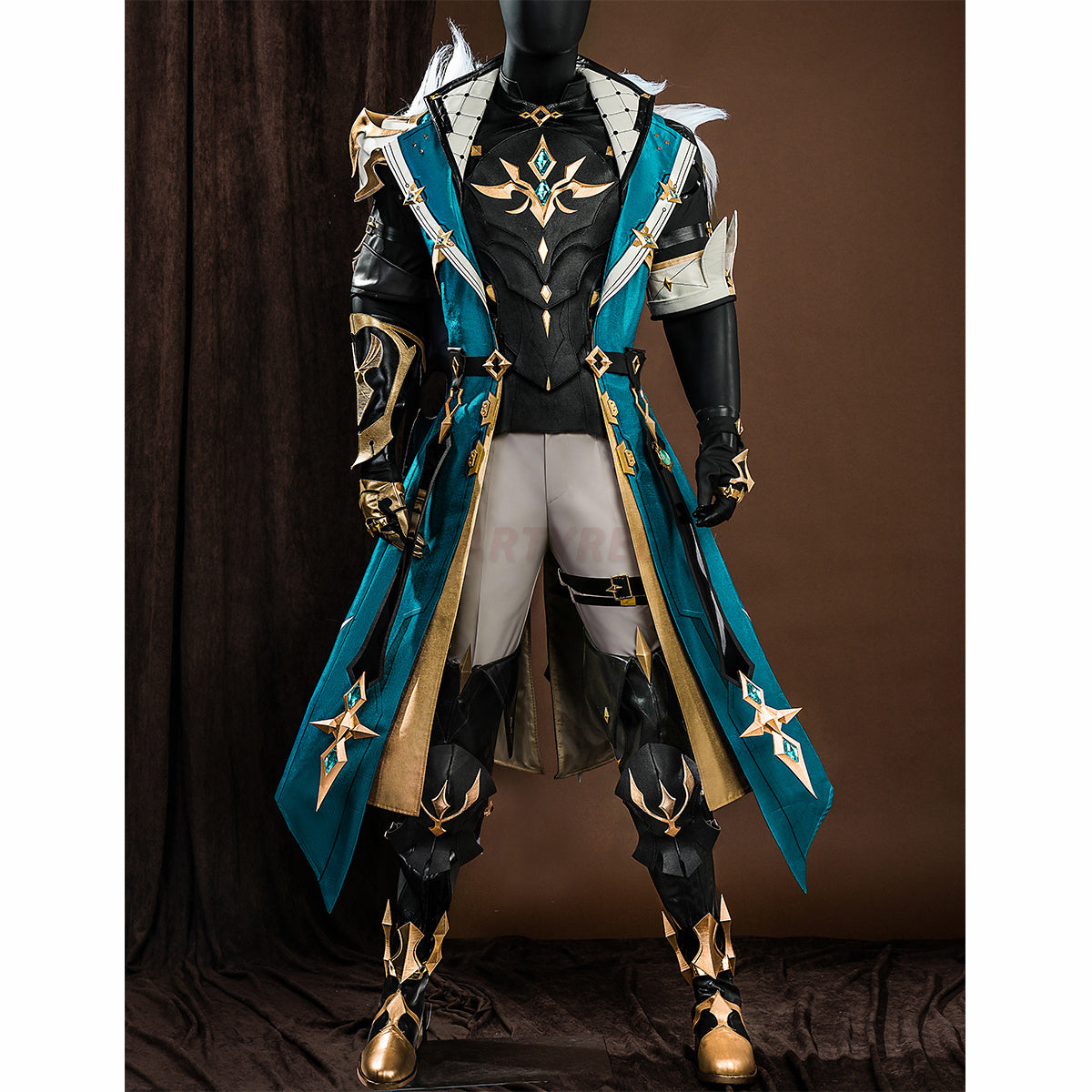 Full Set Includes: Trench coat, Underwear, Pants, Gloves, Gloves prop, Feather set, Armor, Shoulder armor, Arm armor, Knee pads (extra option).